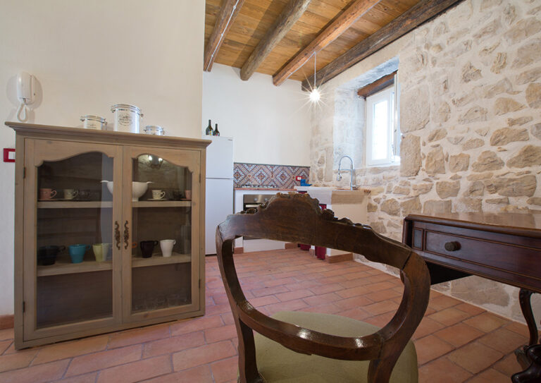 L’appartamento è composto al piano terra da anti-bagno, bagno, cucina con quattro fuochi e forno.