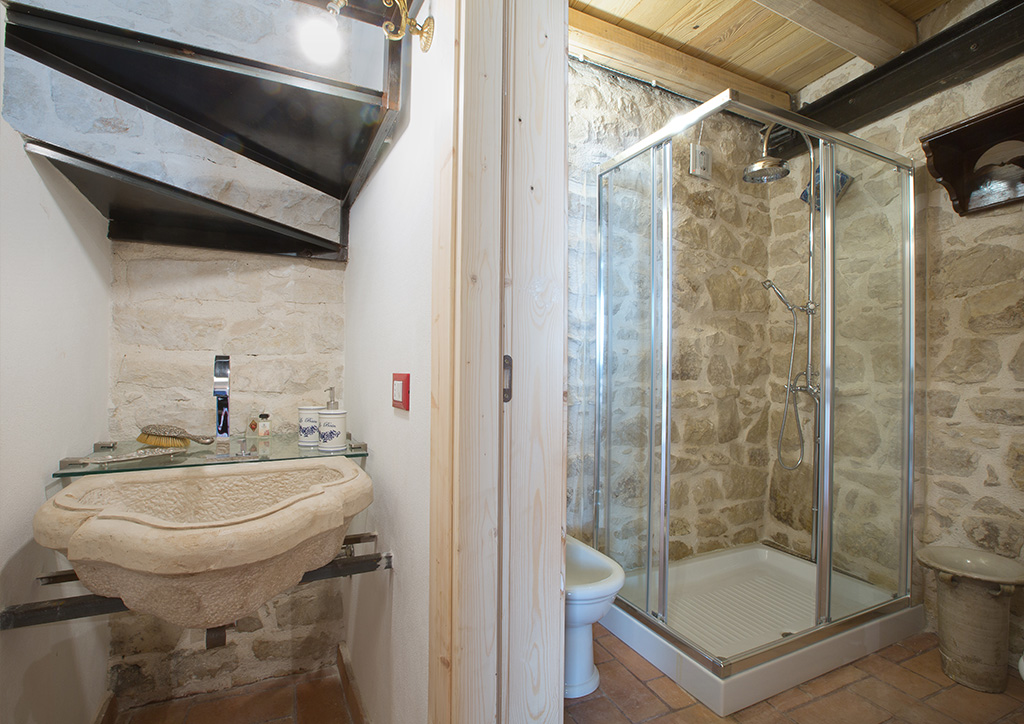 L’appartamento si compone di un’ampio spazio living, una cucina funzionale, provvista di quattro fuochi, forno e lavastoviglie. Al primo piano, dopo aver attraversato un grazioso salottino ottocentesco, ci immettiamo nelle camere da letto: una matrimoniale, una doppia con la possibilità di accludere una terza composta da un letto matrimoniale ed uno singolo.